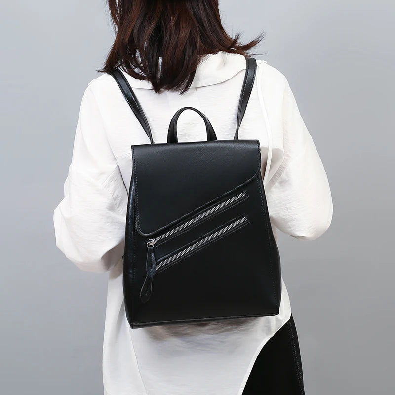 This women's backpack is perfect for teenage girls with its stylish design and high-quality leather material.