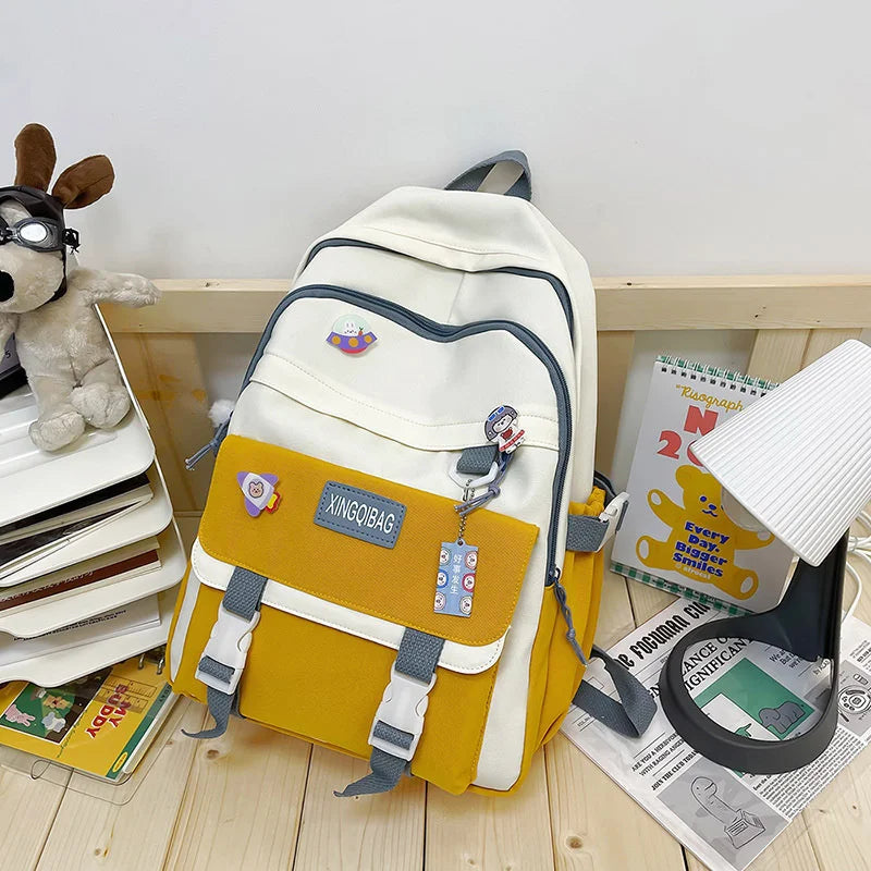Stay stylish and organized with this Japanese backpack designed for women. Made of durable nylon material with a panelled design, this bag is waterproof and perfect for middle school female students.