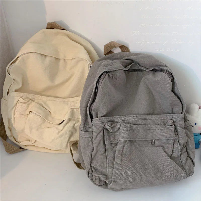 This backpack is designed for teenagers and women. It features a Japanese washed canvas look with a solid color. Perfect for school, travel, or everyday use.