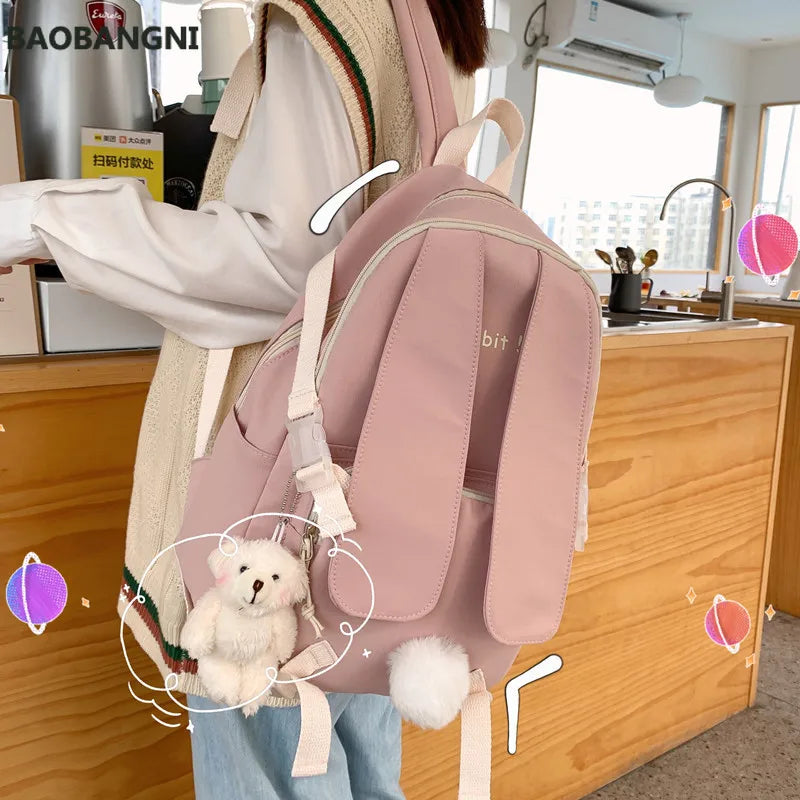 Japanese Women Bag Rabbit Ear Backpack Lady Backpack with Hairball Teenage