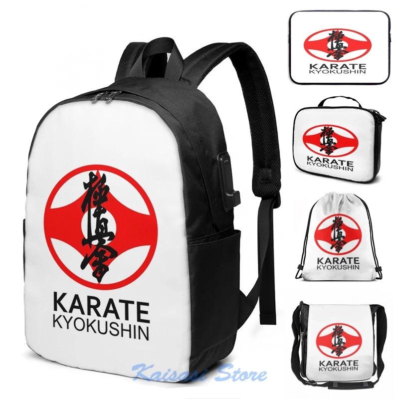 Kyokushin Karate Kanji Symbol USB Charge Backpack Men Women Travel Laptop Bag