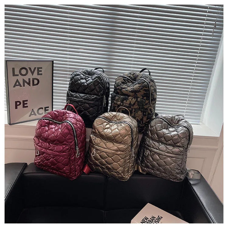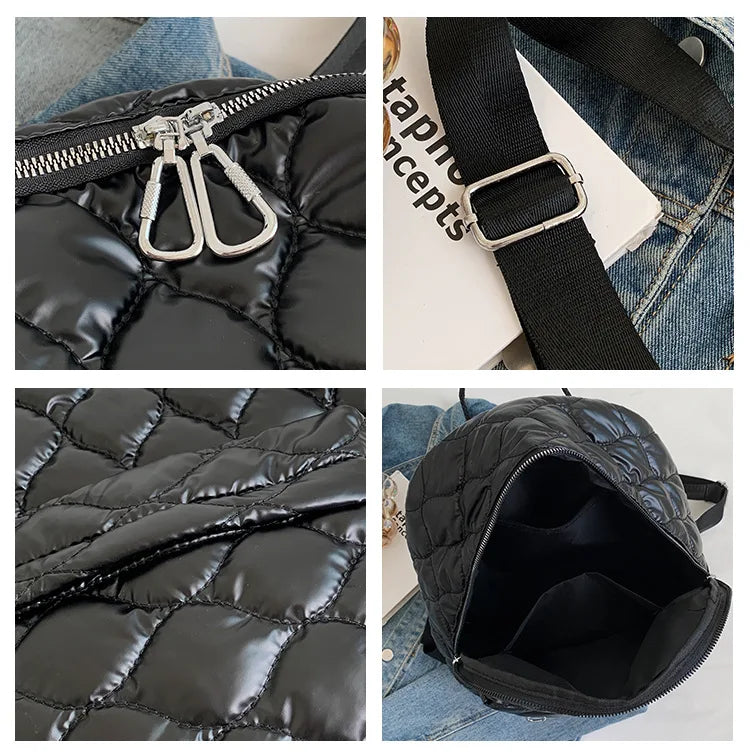 Stay stylish and organized with this small padded backpack for women. Perfect for teenagers, girls, and moms on the go. Features down cotton material for durability and comfort.