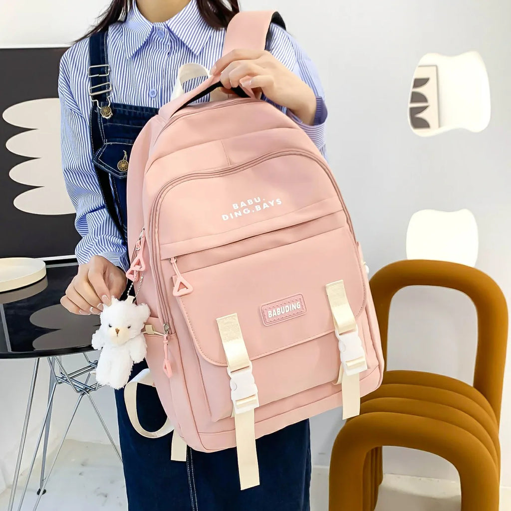 Description:This versatile backpack is perfect for students, featuring a stylish design and spacious compartments. Ideal for carrying books, laptops, and other essentials.Features: Stylish and practical backpack for female students Large main compartment for books and laptop Comfortable to wear with adjustable straps Ideal for college, travel, and everyday use Durable...