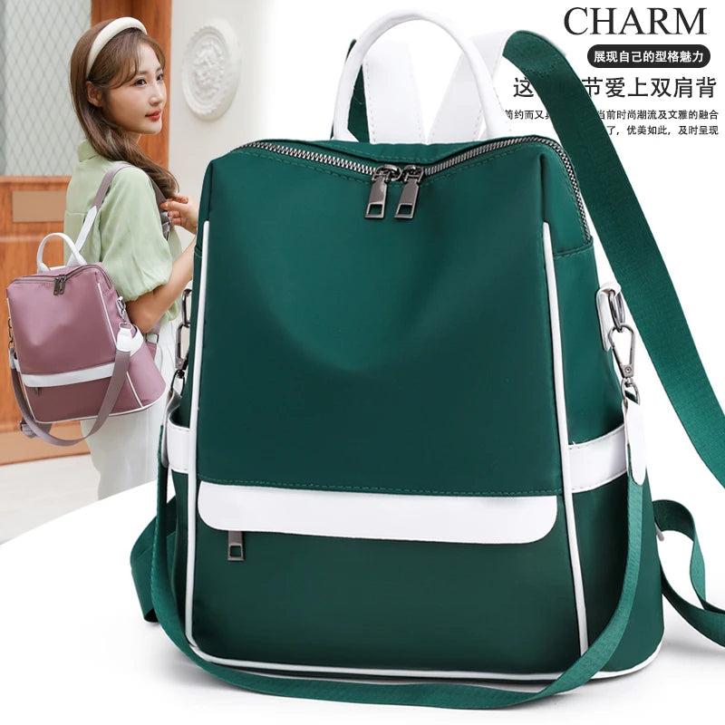 This large capacity backpack is designed for women with a pure Oxford material that is highly waterproof, making it ideal for travel. It offers ample space and practicality for all your belongings.