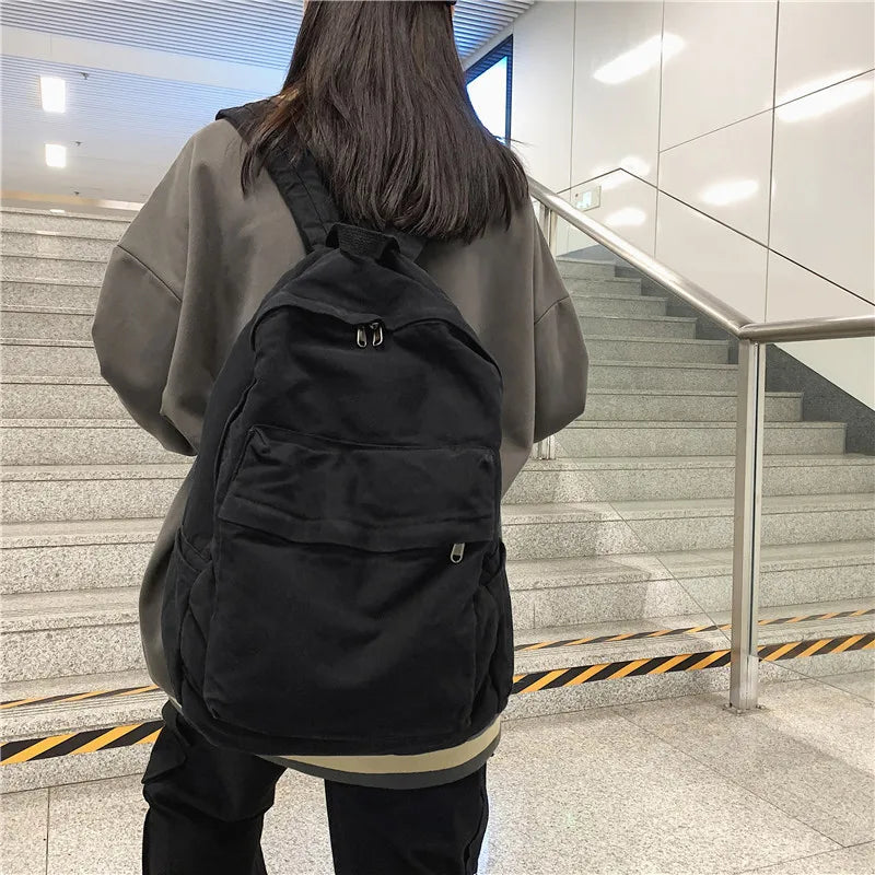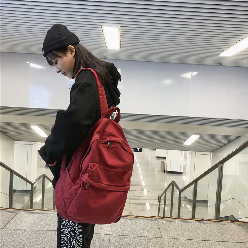 Large Capacity Canvas Backpack For Students Female Travel School Bags