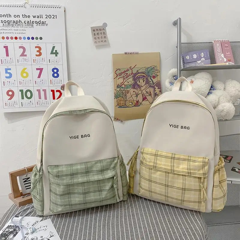 Large Capacity Lattice Women Backpack Canvas Waterproof Bags for Girls