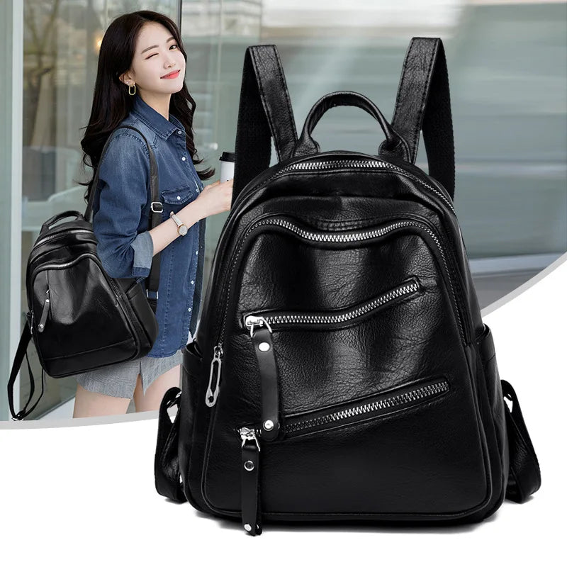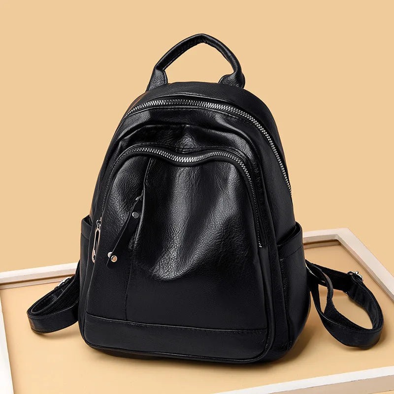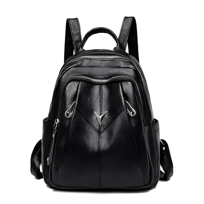 Large Capacity Soft Leather School Bag Backpack for Women