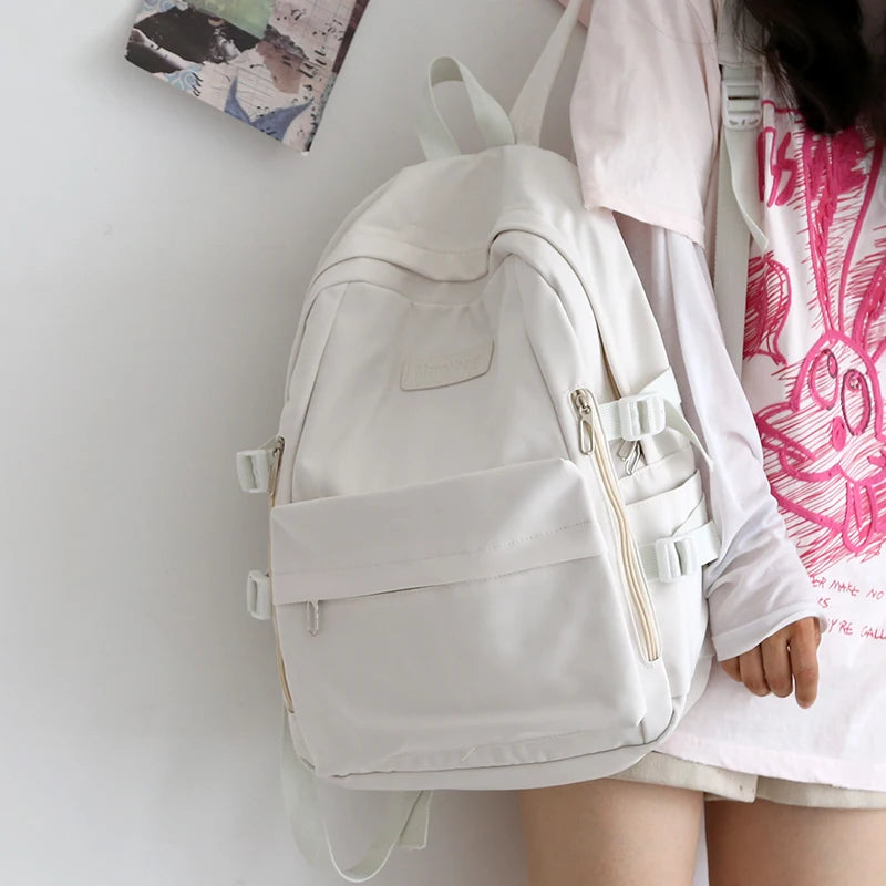 Stay stylish and organized with this spacious nylon backpack, perfect for school or leisure. Its waterproof design ensures your belongings stay dry. Features multiple compartments and adjustable straps for a comfortable fit.