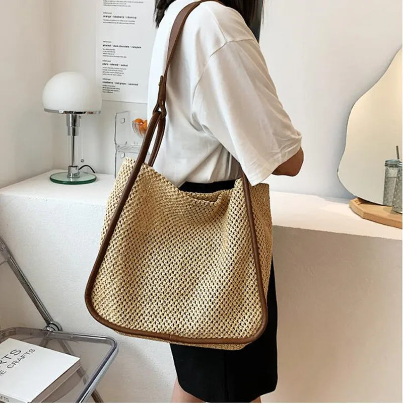 Stay stylish and organized with this summer straw backpack that offers a large capacity for all your essentials. Perfect for travel, beach days, or everyday use.