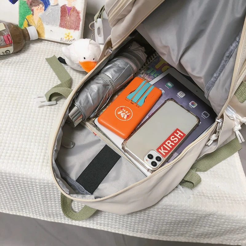 This large-capacity backpack is perfect for students and travel enthusiasts. It features a stylish emblem, making it a great choice for girls and women.