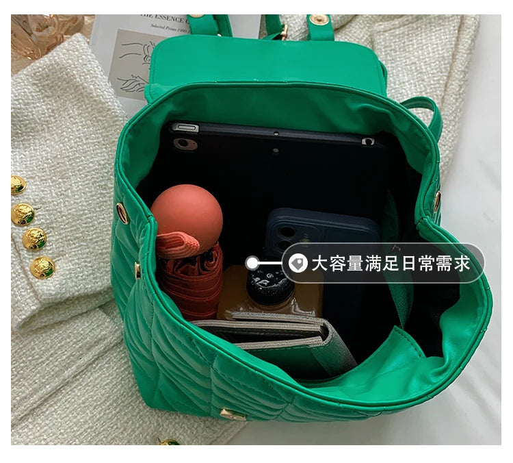 This stylish women's backpack is made of high-quality PU leather and designed for teenage girls. It's perfect for travel, school, and books.