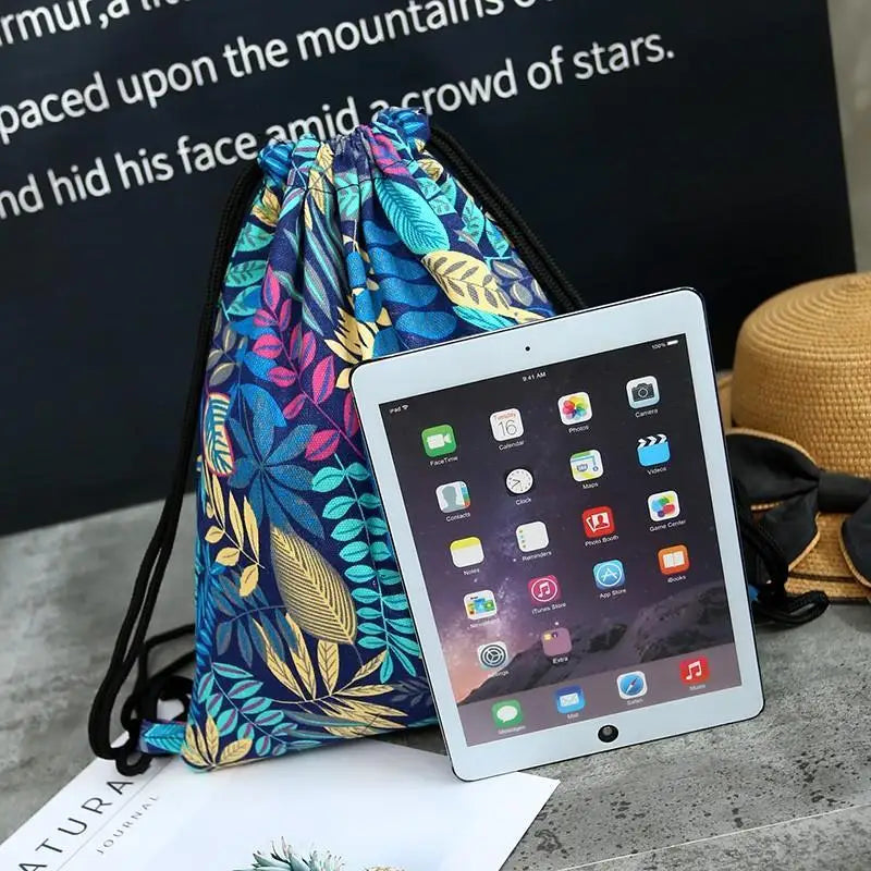 Leaf Drawstring Shoulder Storage Bag Women Men Travel Beach Backpack