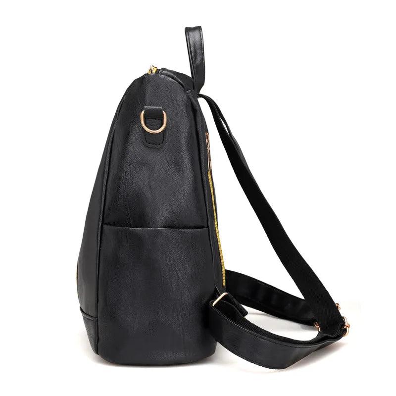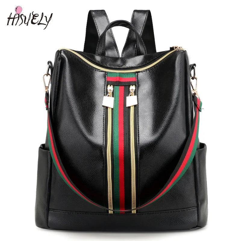 This stylish leather backpack is designed for women with a preppy style. It is perfect for school and teenage girls looking for a fashionable rucksack.