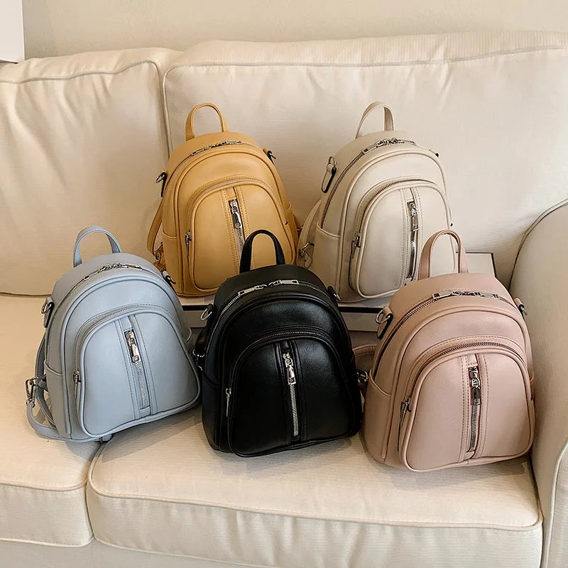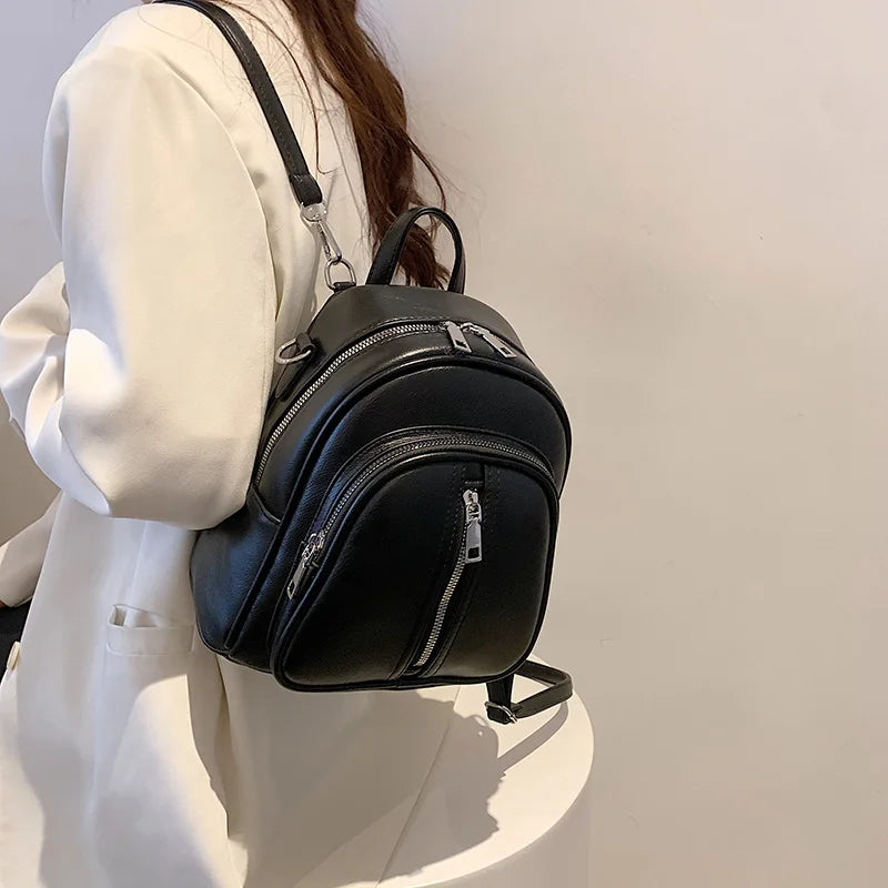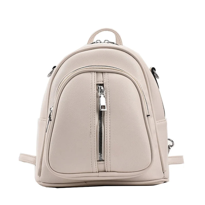 Leather Female Backpack for Women Curved Top Zip Front Backpack