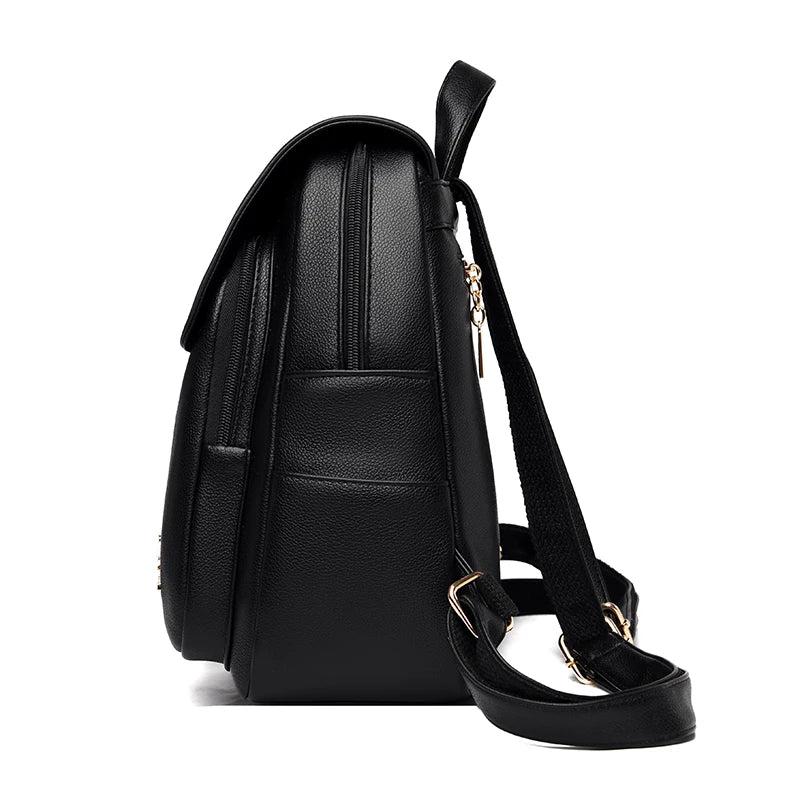 Leather Women Backpack Lychee Pattern Large-capacity School Travel Bag