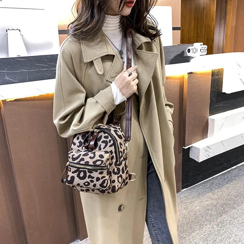 This retro mini backpack features a stylish leopard print, making it perfect for teenage girls. It's ideal for casual use and school activities.