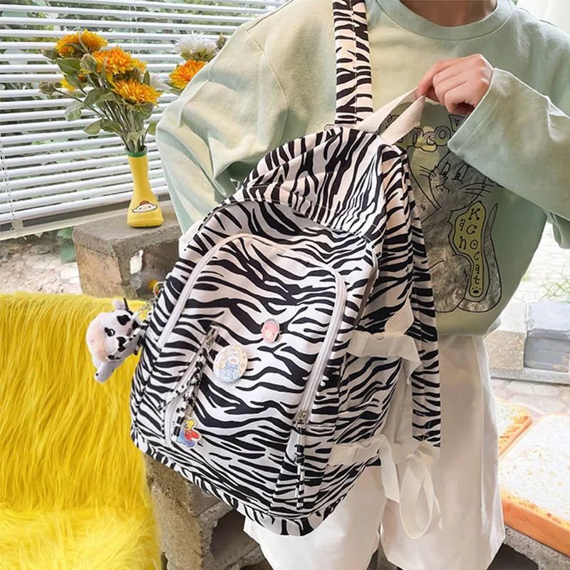 This large-capacity women backpack features a trendy leopard print design perfect for junior high school students. It is a casual and stylish choice for teenage girls on the go.