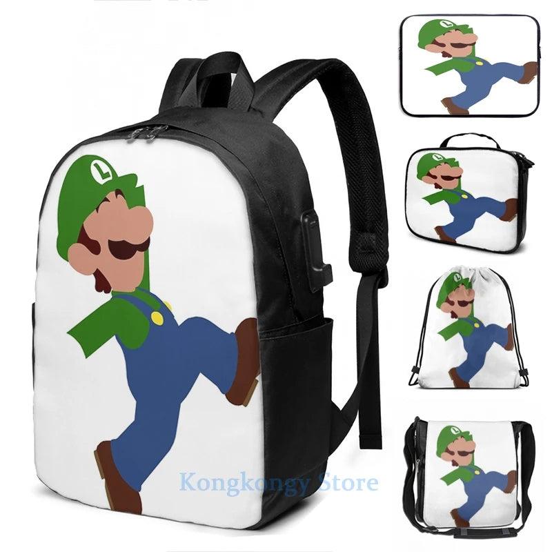 Get a laugh with this funny graphic print Luigi minimalist backpack featuring USB charging port. Ideal for school, work, travel, and more.