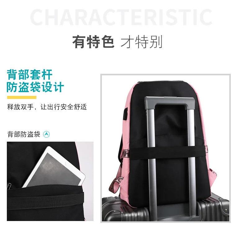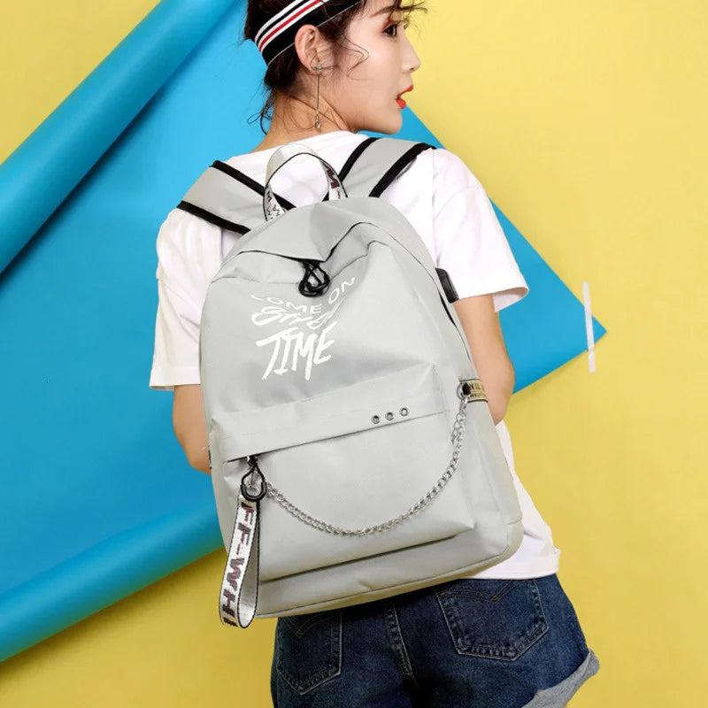 Luminous USB Charge Women Backpack Waterproof Polyester Letters Print School Bag