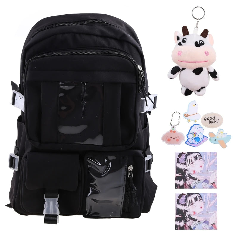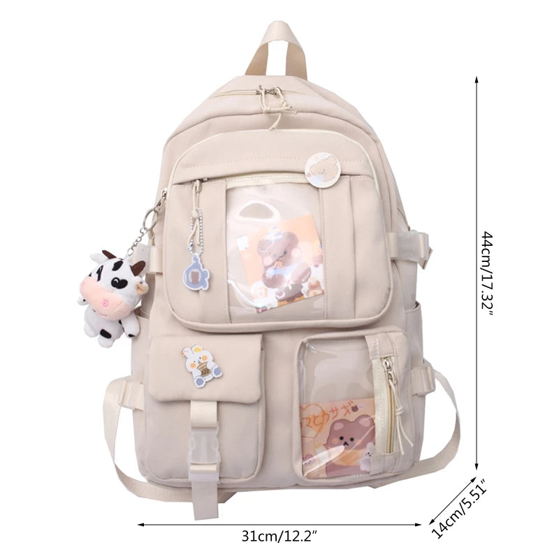 Description:Stay stylish with this Harajuku-inspired multi-pocket backpack perfect for students. Features a laptop sleeve and spacious compartments for books and essentials.Features: Harajuku-inspired design for a trendy look Multiple pockets for organizing school supplies Includes a laptop sleeve for convenience Spacious compartments for books and essentials Comes with a cute pendant...