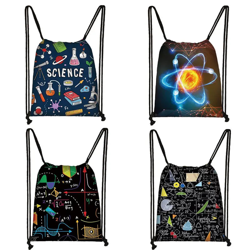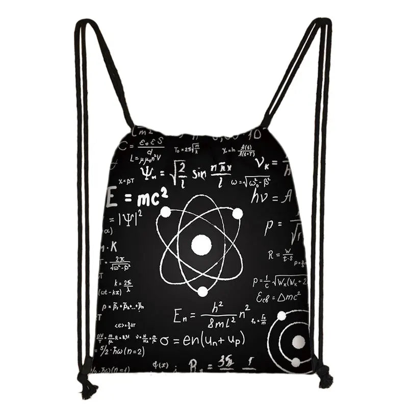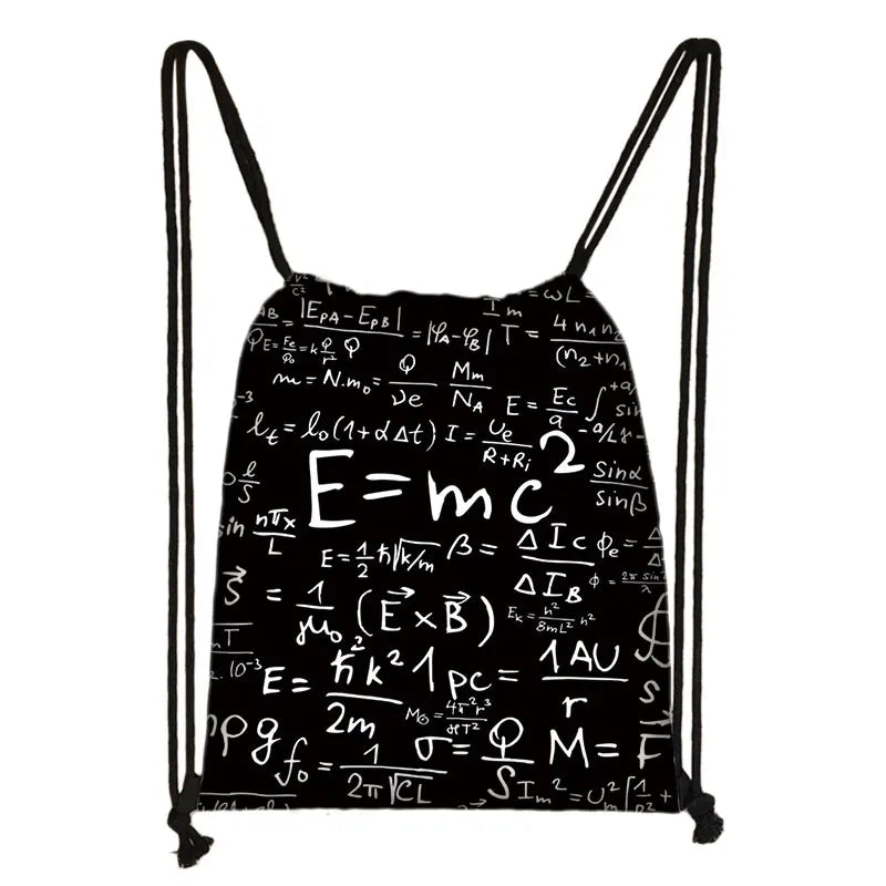 Get ready to carry your essentials with this mathematical formula print drawstring bag. Perfect for travel or everyday use!
