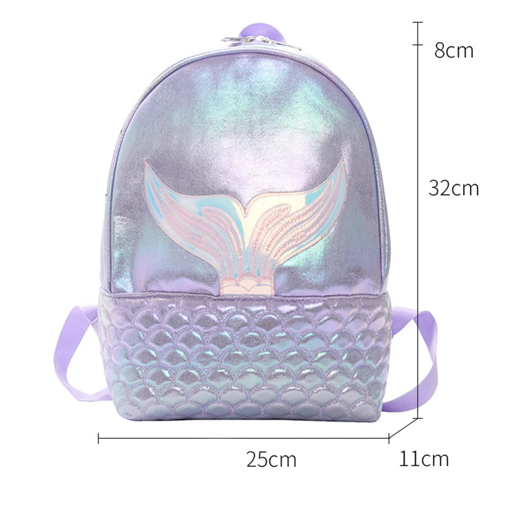 Mermaid Sequin Glitter Backpack Bling PU Leather Bag Zipper