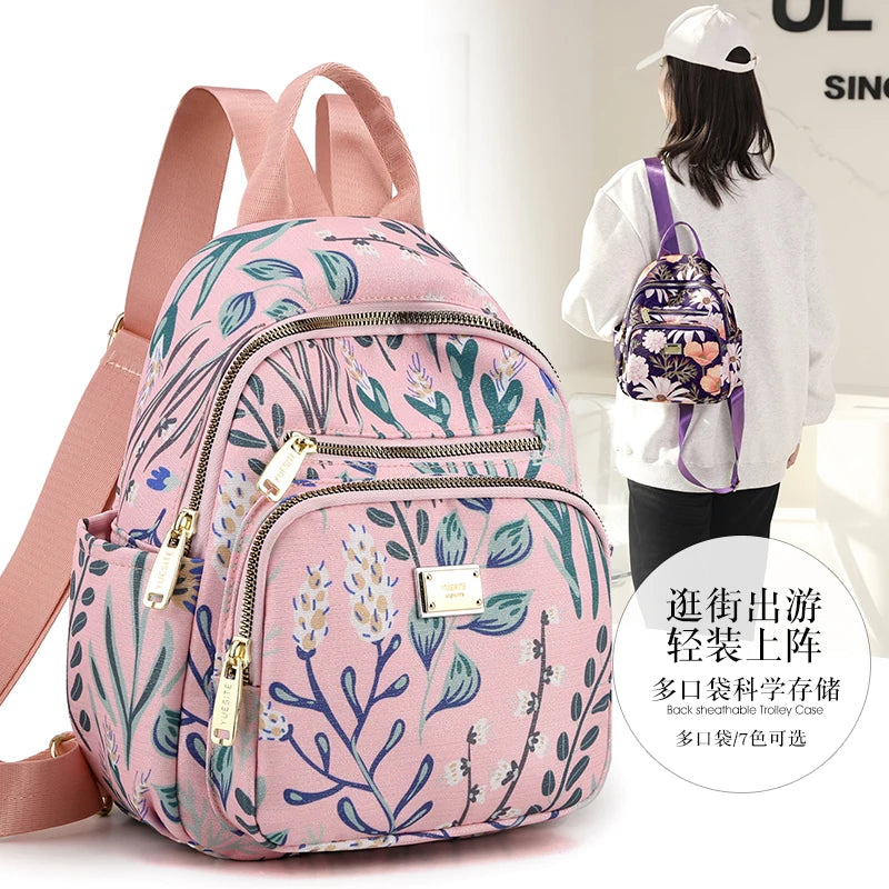 This mini backpack crossbody bag features a pastoral style with floral and plant designs, perfect for teenage girls and women. It can be worn as a shoulder or crossbody bag and fits essentials like a phone, keys, and wallet.