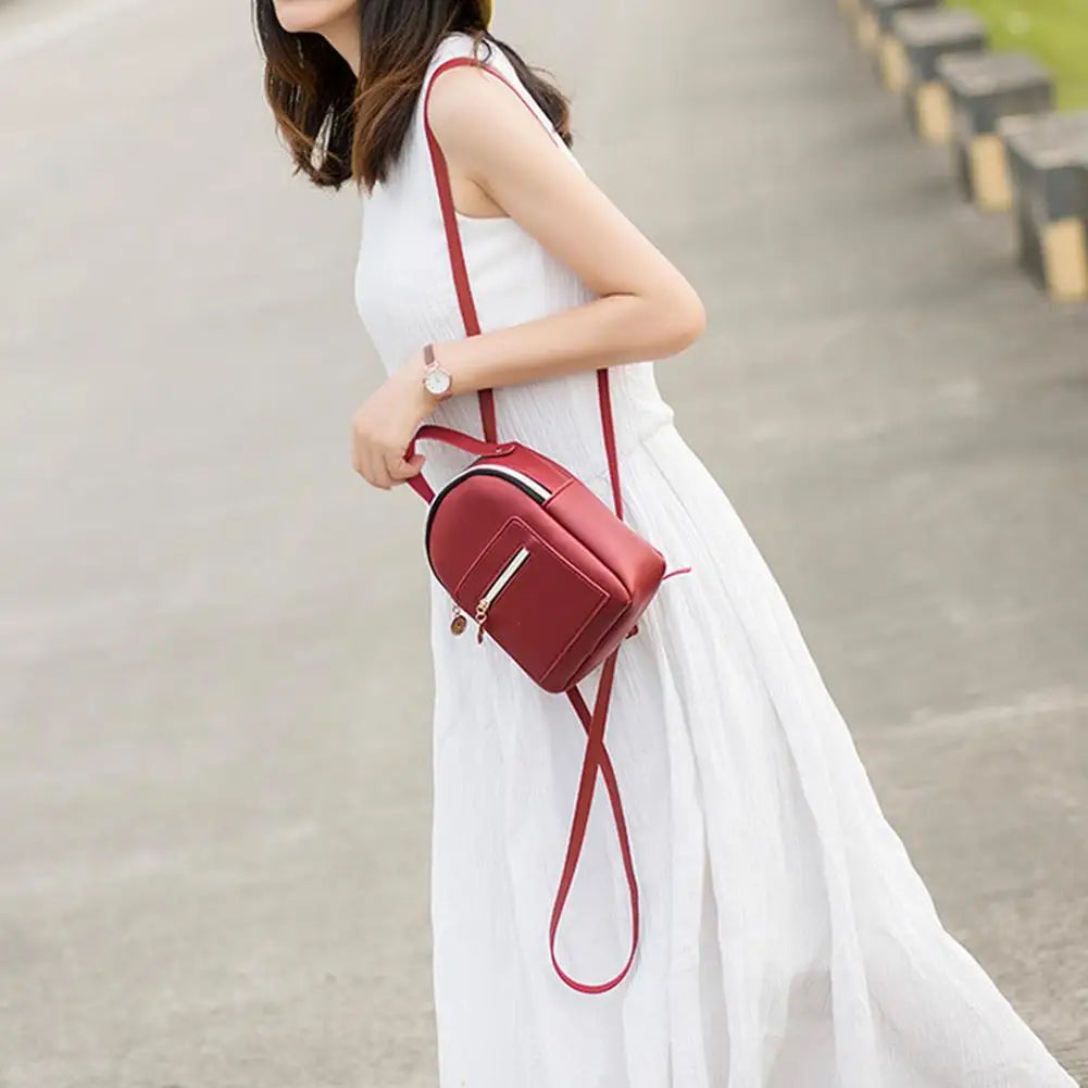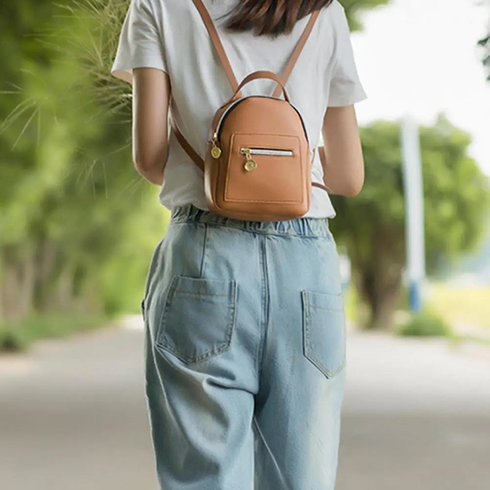 This stylish mini backpack for women is made of high-quality PU leather, featuring a solid design and waterproof properties. It has a convenient zipper closure.