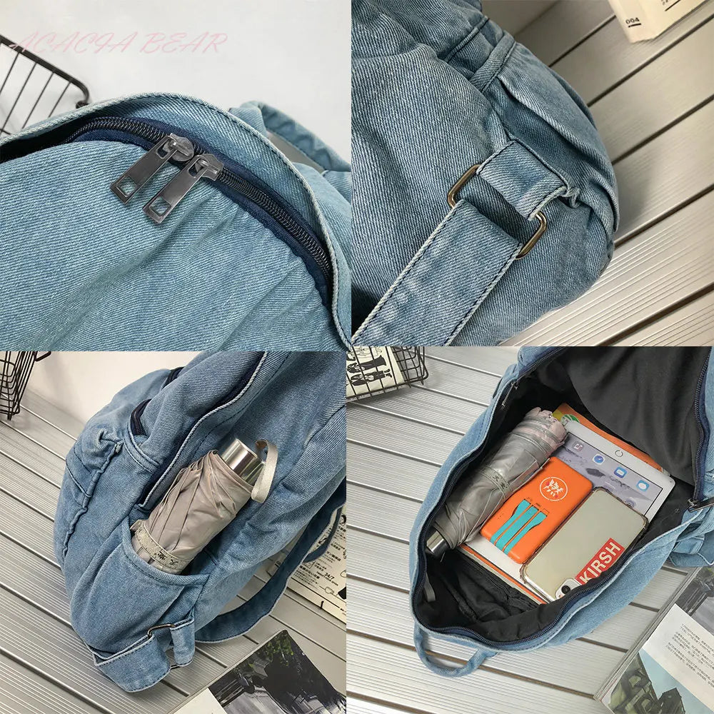 Mini Denim Backpack Women Students Bag Girl School Youth Rucksack