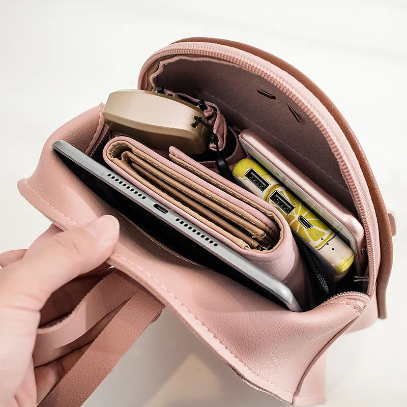 This casual mini backpack for women is made of PU leather and features a stylish bow-knot design. It can be used as a crossbody or shoulder bag, perfect for daily use or school.