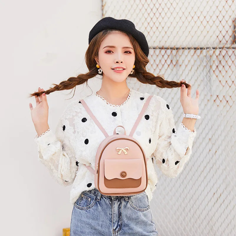 Mini PU Leather Backpack with Bow-Knot - Small School Bag for Girls