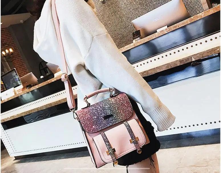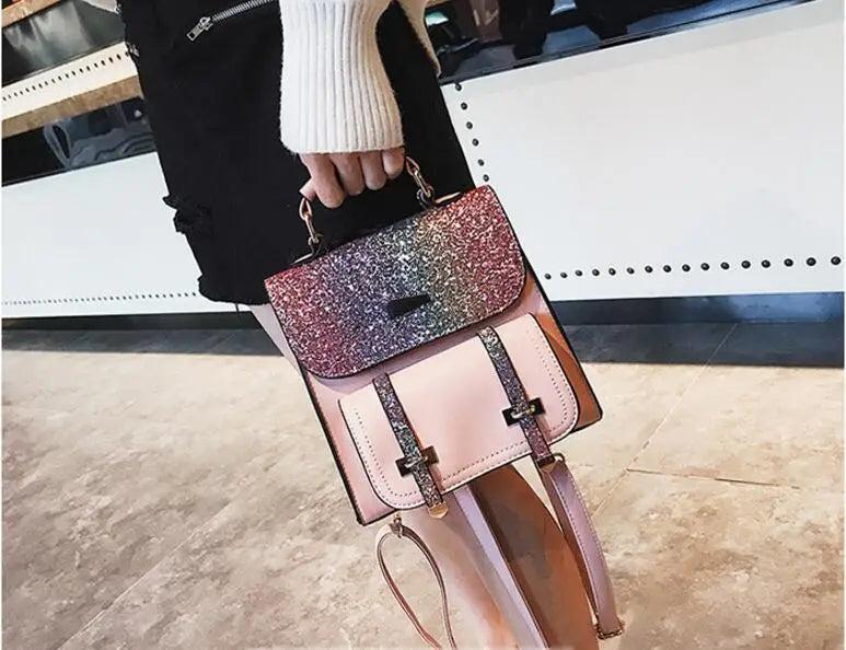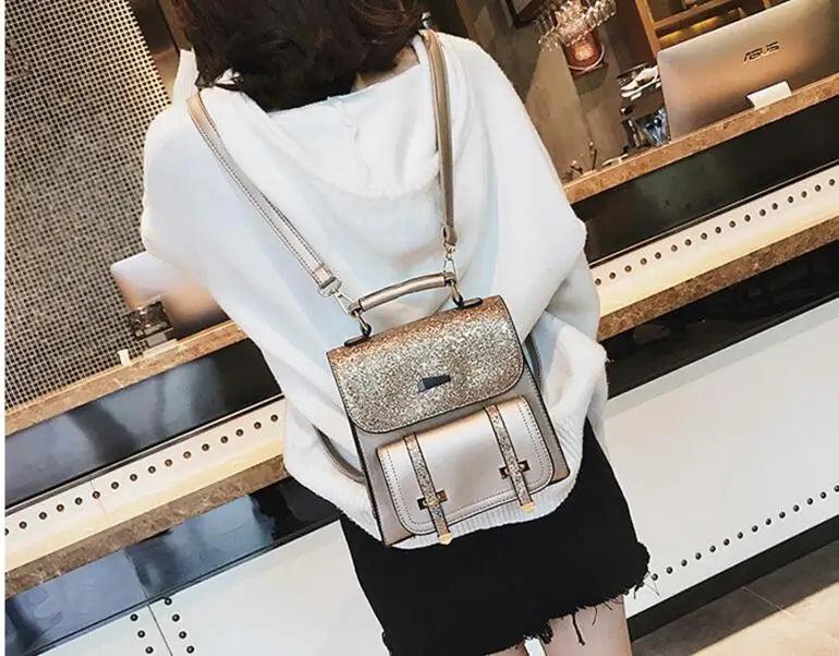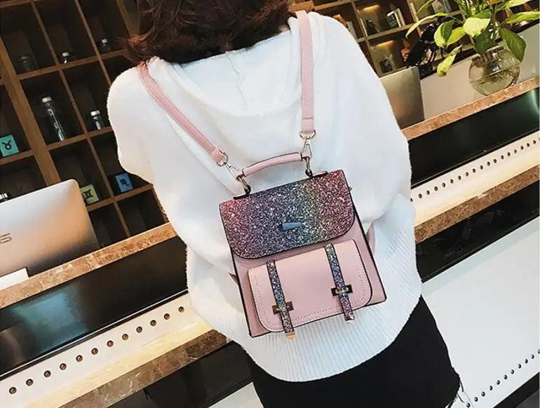Mini Sequins Girls Backpack Sweet Girl Shoulder Bag High PU Leather Women Bag