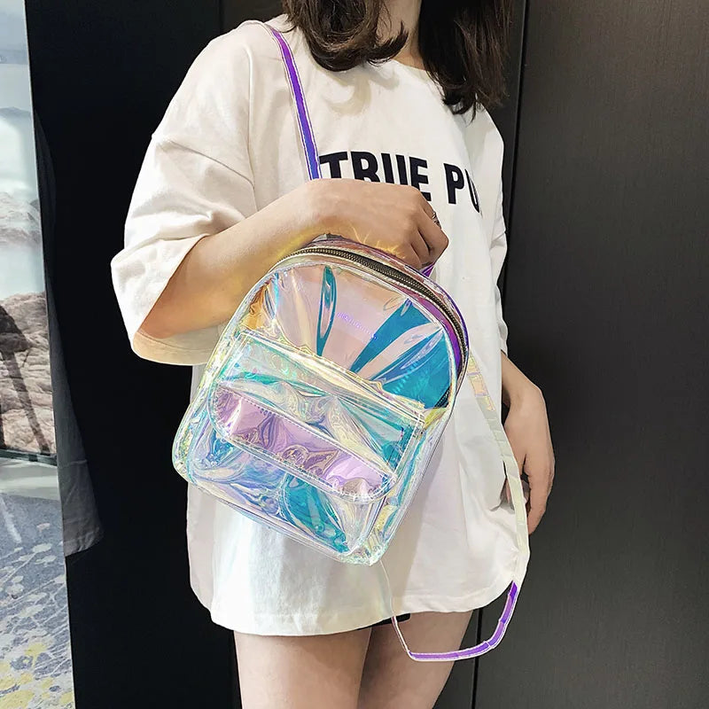 Mini Silver Laser Holographic Backpack Girls Shoulder Bag