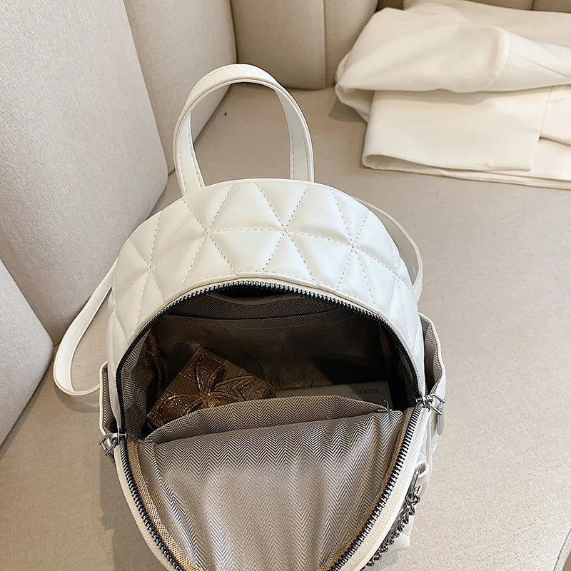 This mini backpack is crafted from high-quality PU leather and features a stylish chain decoration. Perfect for women on the go.