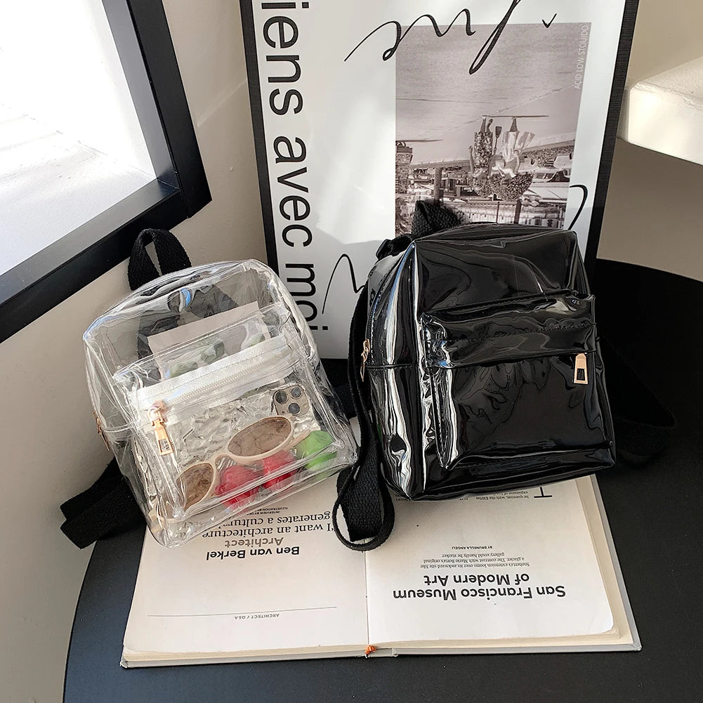 Mini Transparent Women Backpack PVC Kids Girls Student School Bags