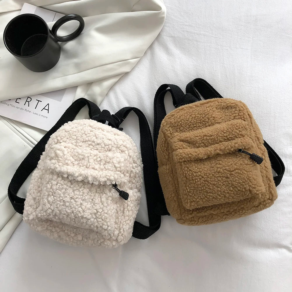 Mini Women Backpack Lamb Wool Plush School Shoulder Bags Travel Rucksack