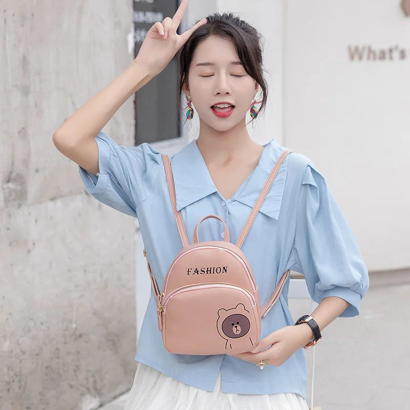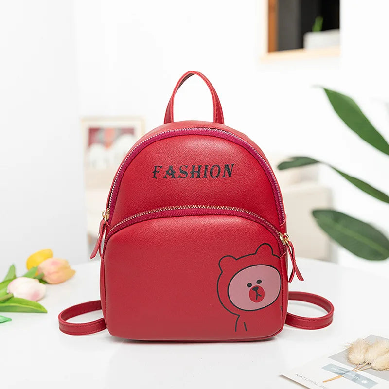 This mini women backpack is made of waterproof PU material, perfect for students. It features a cute cartoon print design, ideal for girls.