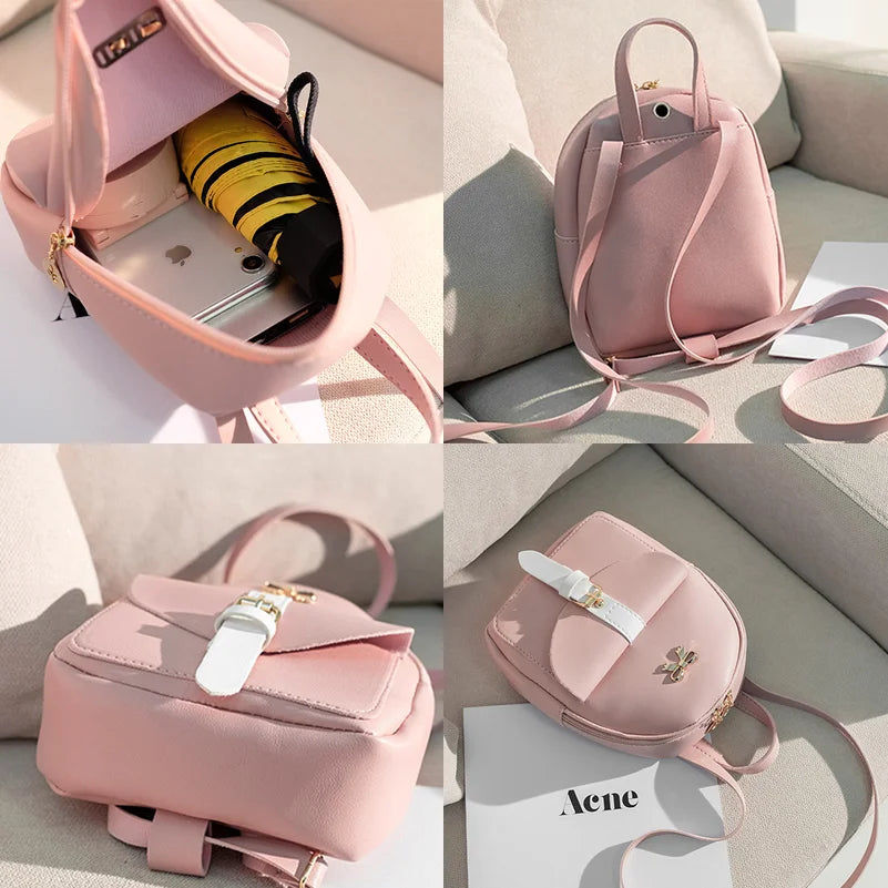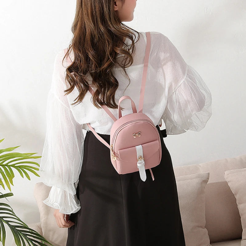 This mini women backpack is perfect for daily use. It features a cute bow design and can also be used as a small shoulder bag.