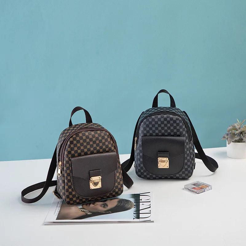 This stylish mini backpack is made of PU leather and designed for women. It features a multi-function design with a phone pouch and is perfect for school or daily use.