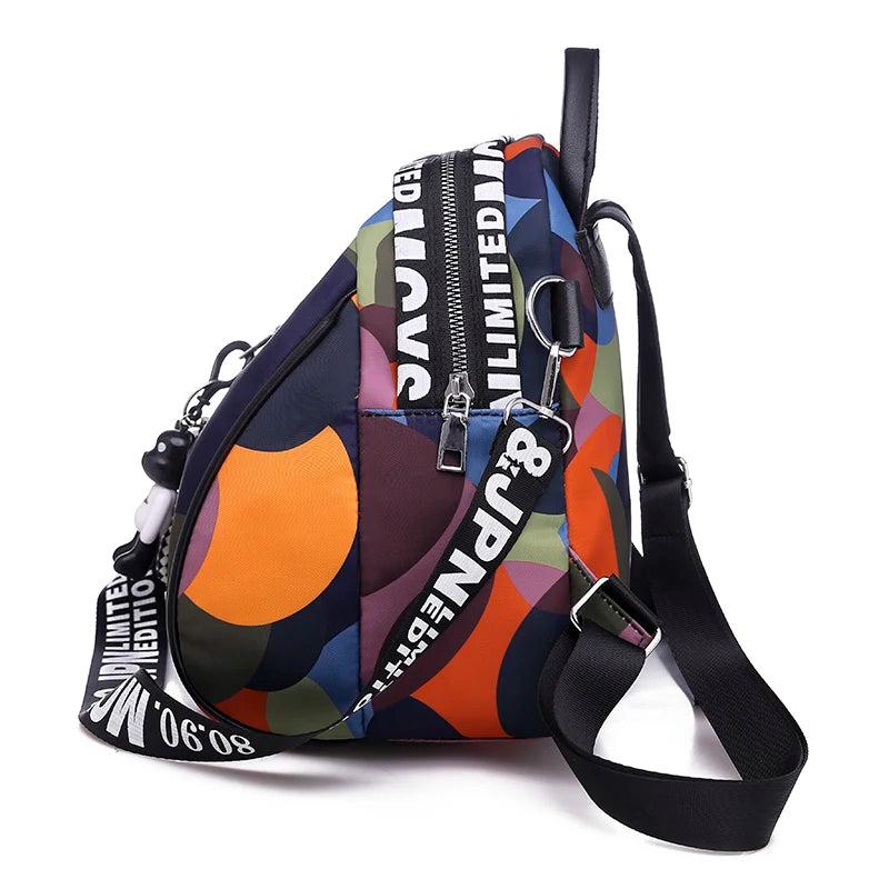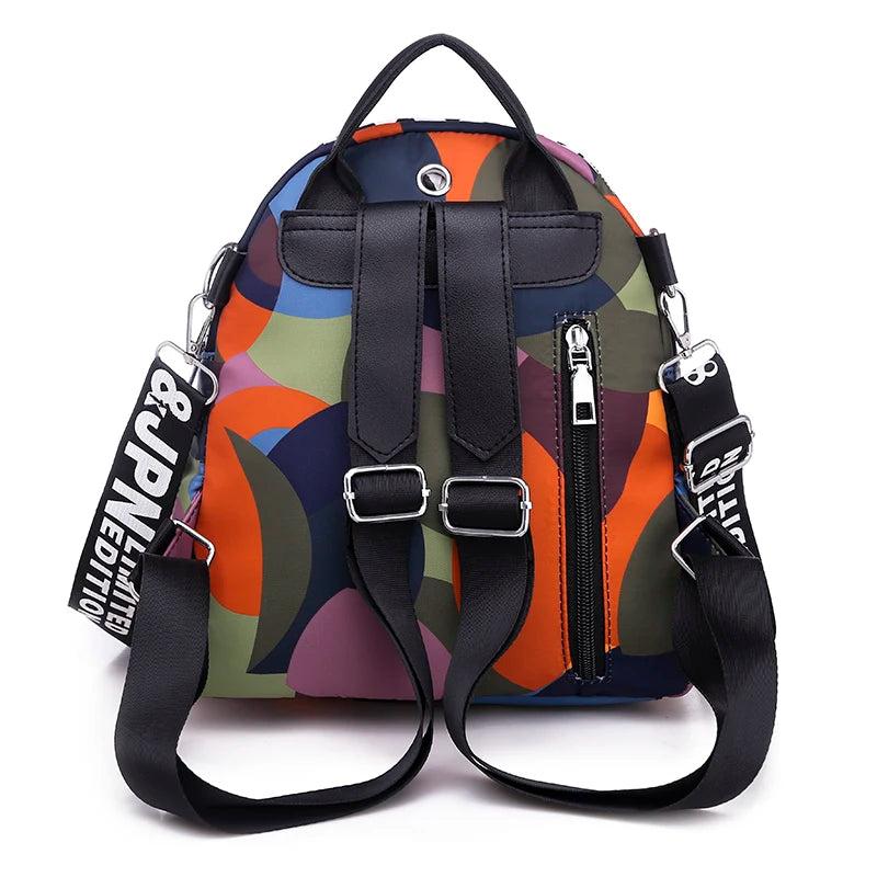 This stylish multicolor backpack is made of durable Oxford cloth and is perfect for women and teenage girls. It features multiple compartments and comfortable shoulder straps.
