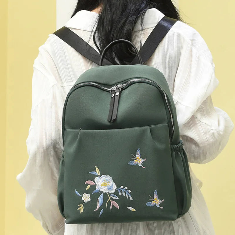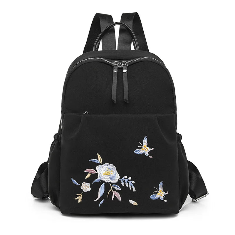 This backpack features beautiful flower embroidery and is ideal for women on the go. It offers anti-theft protection and is perfect for teenage girls going to school.