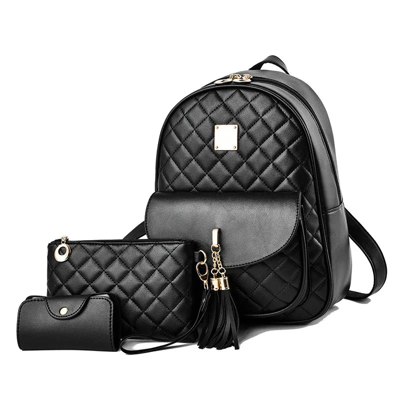 Stay stylish with this compact mini backpack made of high-quality PU leather. Includes a set of three bags suitable for girls and school use.