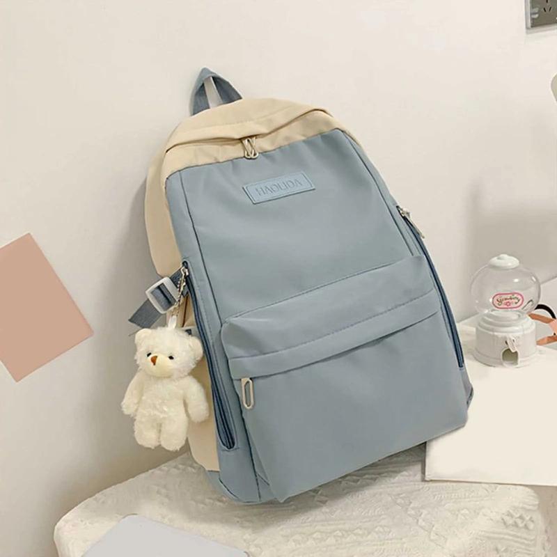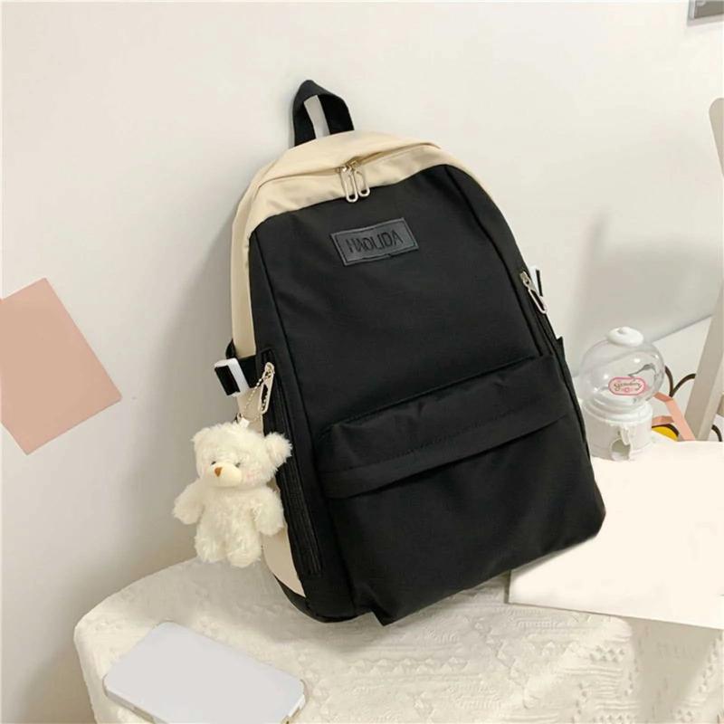 Nylon School Backpack for Women Solid Color Waterproof Daily Bag