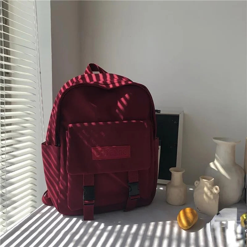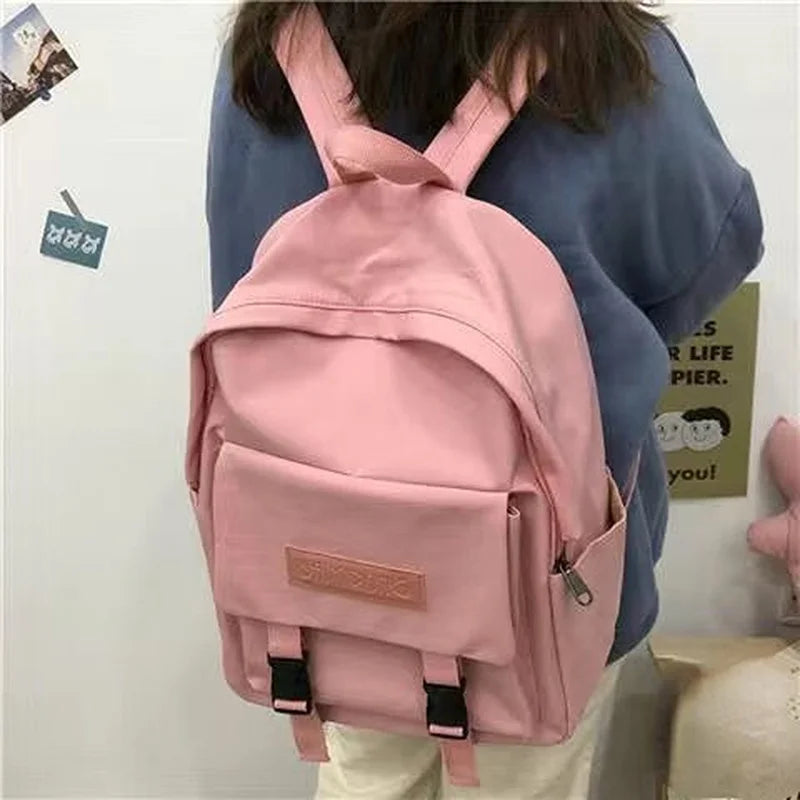 Stay stylish and organized with this solid nylon backpack. Perfect for students, teenagers, and women on-the-go. Features a laptop compartment and waterproof material for all-weather use.
