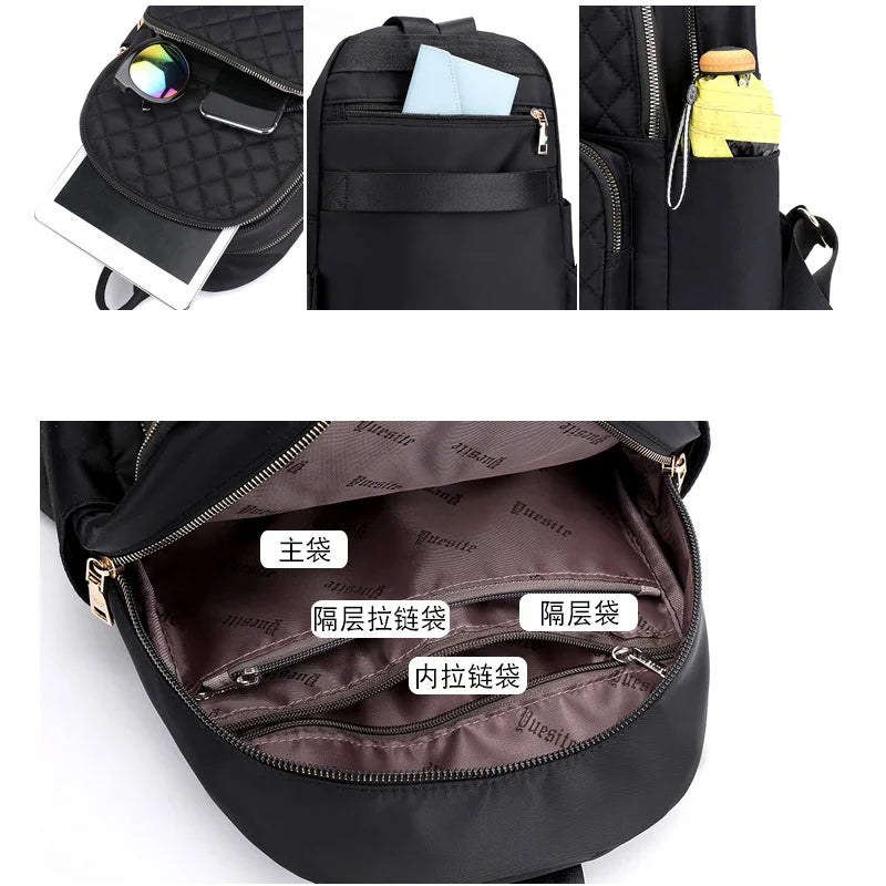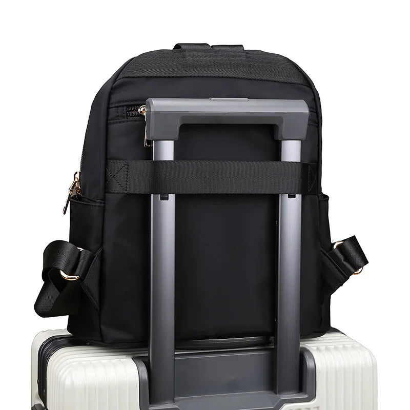 Stay stylish and organized with this multifunctional nylon backpack perfect for school or casual use.