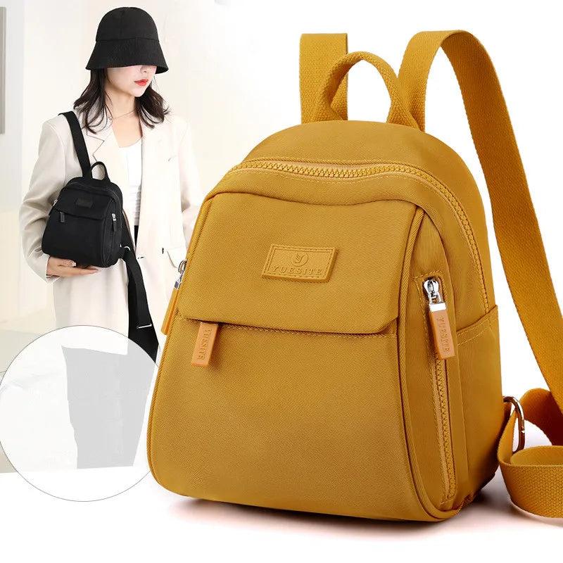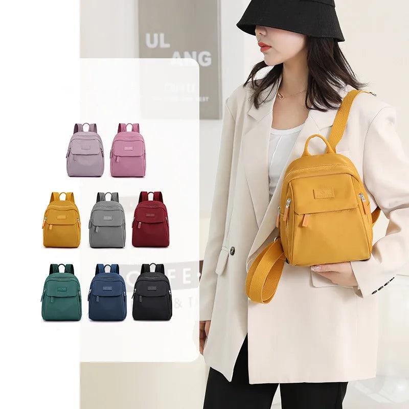 This stylish backpack is perfect for teenage girls with its small size, waterproof nylon material, and functional design. Ideal for school or travel.