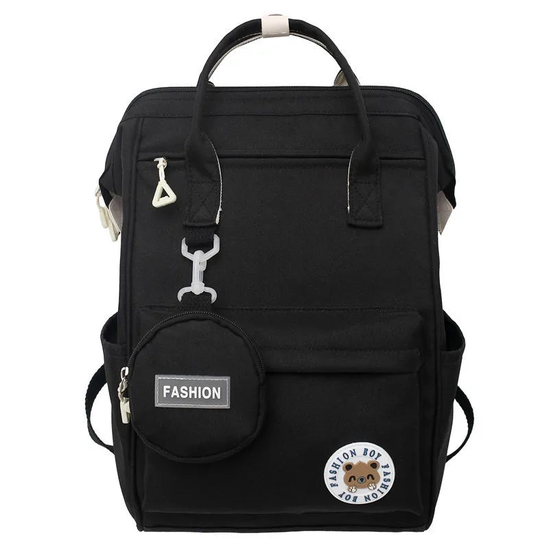 This backpack is designed for women and teenage girls in school, featuring waterproof nylon material. It is suitable for travel and can accommodate laptops. An ideal student book bag for females.