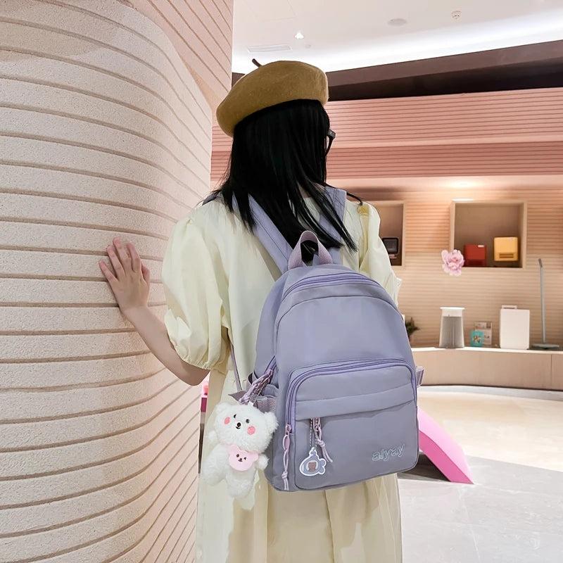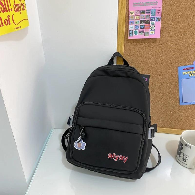 This multifunctional nylon women backpack is perfect for daily use. It features letters embroidery and is ideal for girls as a little schoolbag.