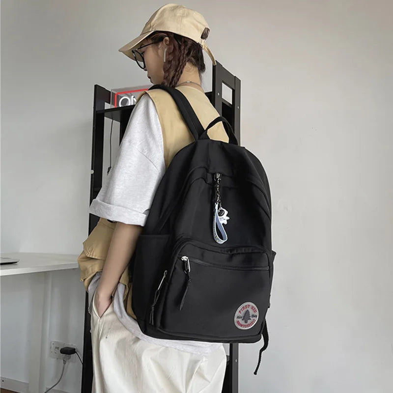 Nylon Women Backpack Solid Student Schoolbag Harajuku Large Capacity