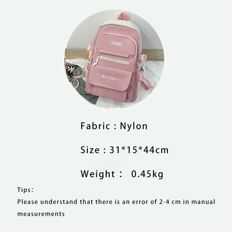 Description:This women middle school backpack is made of nylon with multiple pockets for organizing your essentials. It features a panelled design suitable for laptops.Features: Made of durable nylon material Multiple pockets for organized storage Large capacity to carry all your essentials Panelled design suitable for laptops Ideal for women in...